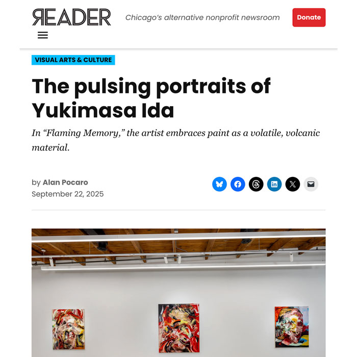 Chicagoのニュースサイト READER にて、井田幸昌の個展"Flaming Memory"についての記事が掲載されました。生き生きとした筆触と記憶の痕跡を描く作品群の魅…
